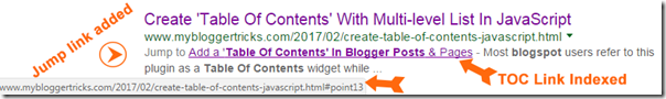 The contents list generated using TOC plugin is SEO friendly. Anchor links inside it are easily crawled and indexed by search robots. See the image below taken from our last blog post: